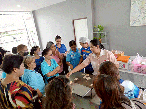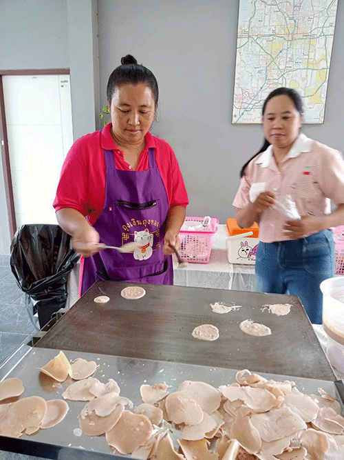 ภาพกิจกรรมโครงการฝึกอาชีพสำหรับชุมชนอย่างยั่งยื่น (ขนมไทยนางเล็ด) รุ่น 1 วันที่ 30 กรกฎาคม 2568 มีวัตถุประสงค์เพื่อส่งเสริมอาชีพกลุ่มแม่บ้าน ผู้สูงอายุ และเยาวชนที่ขาด ทักษะ หรือต้องการเพิ่มพูนความรู้ในการทำขนมไทยนางเล็ดเพื่อนำไปต่อยอดในการประกอบอาชีพ ซึ่งได้รับเกียรติจากคุณกรชวัล สังข์ทอง ผู้อำนวยการสำนักงานนิคมอุตสาหกรรม บ้านหว้า(ไฮเทค) เป็นประธานเปิดงาน มีผู้เข้าร่วมกิจกรรมทั้งสิ้น 30 คน โดยวิทยากรจากกลุามขนมไทยนางเล็ด หมู่ 4 ต.บ้านโพ