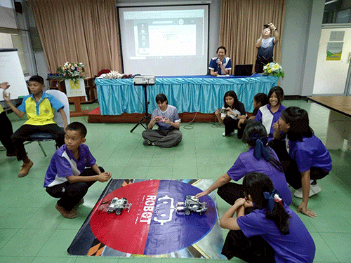 ภาพอบรมโครงการเสริมสร้างทักษะหุ่นยนต์เพื่อการต่อยอด รุ่น 1 แก่นักเรียนชั้น ป.4-6 โรงเรียนวัดโพธิ์